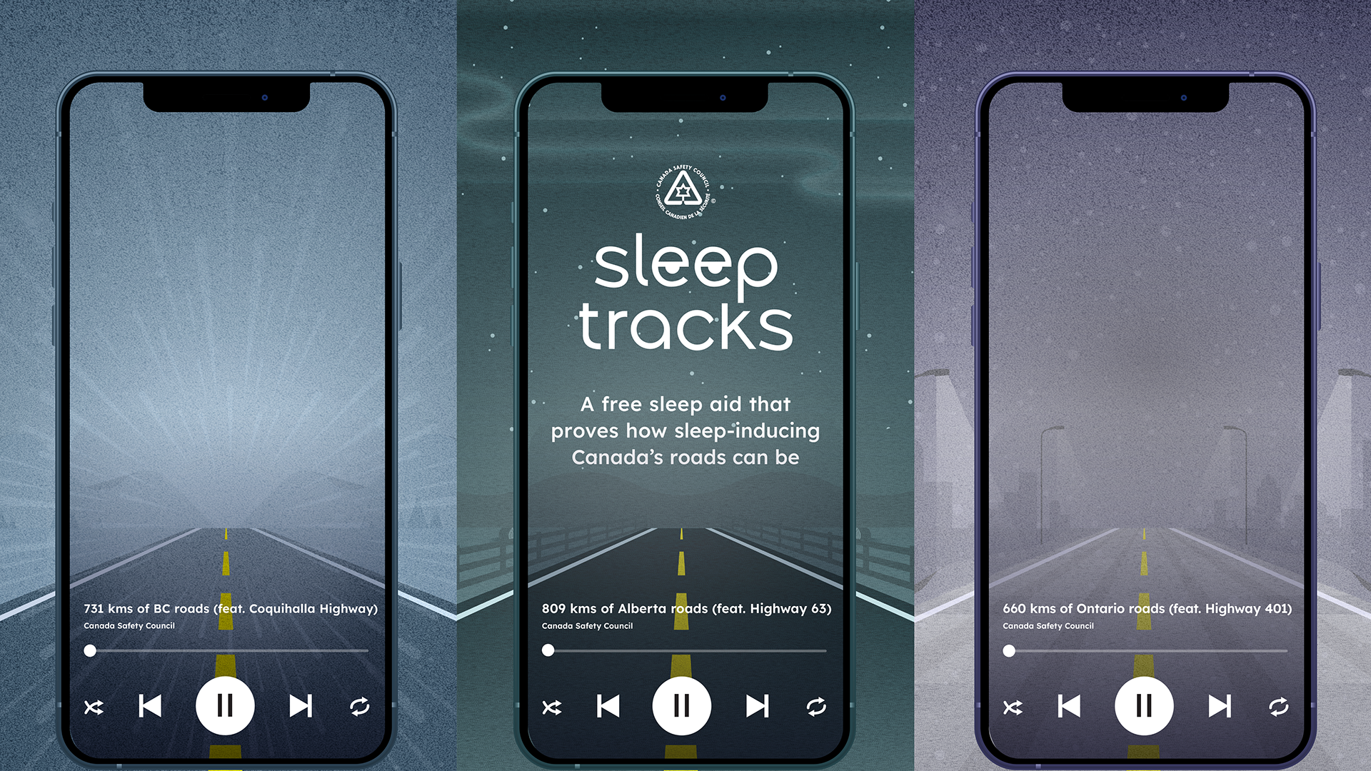 Drowsy driving causes 21% of all road crashes in Canada. But, despite this statistic, many drivers don't feel as though the risk applies to them. So, we created Sleep Tracks – a free sleep aid that uses sounds recorded from Canada's most sleep-inducing highways, to prove how dangerously effective the road is at making you drift off.